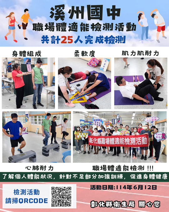 ::: 首頁 › 關於本所 › 活動花絮 活動花絮 114年6月12日於溪州國中舉行職場體適能檢測活動 2025-06-13 114年6月12日於溪州國中舉行職場體適能檢測活動照片 114年6月12日於溪州國中舉行職場體適能檢測活動照片 << < 1 > >> 資料筆數 【2】頁數【1/1】